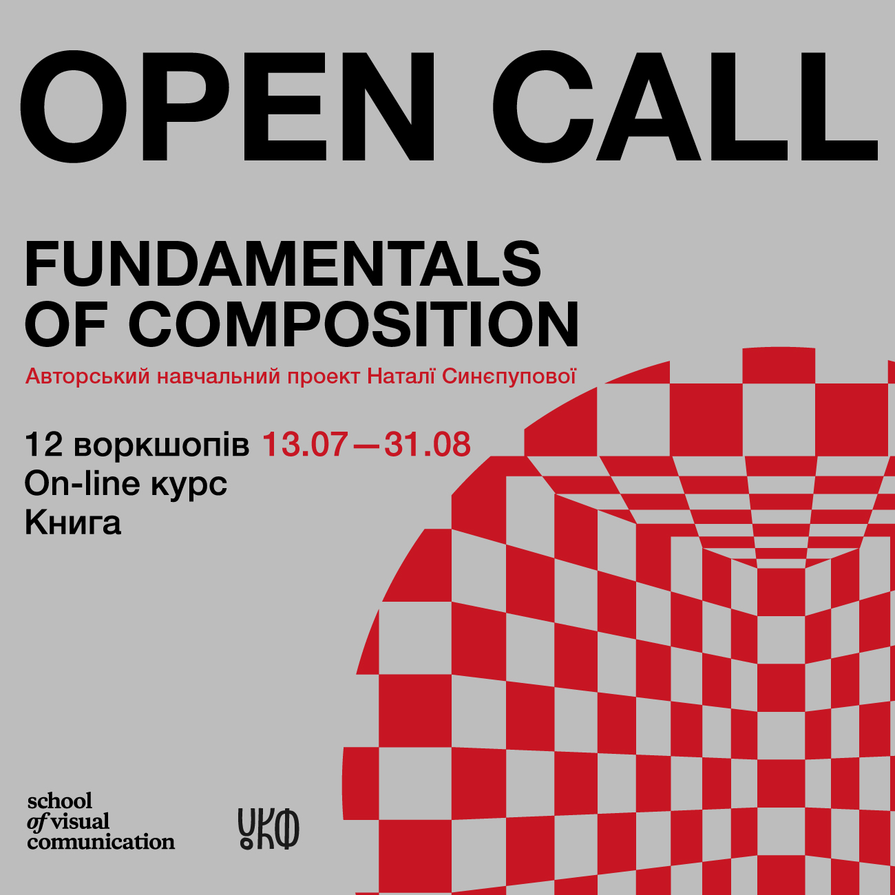 "Fundamentals of Composition" – це авторський навчальний проект Наталії Синєпупової, засновника School of Visual Communication, реалізований за підтримки програми «НОРД: Навчання, обміни, резиденції, дебюти» від Українського культурного фонду.